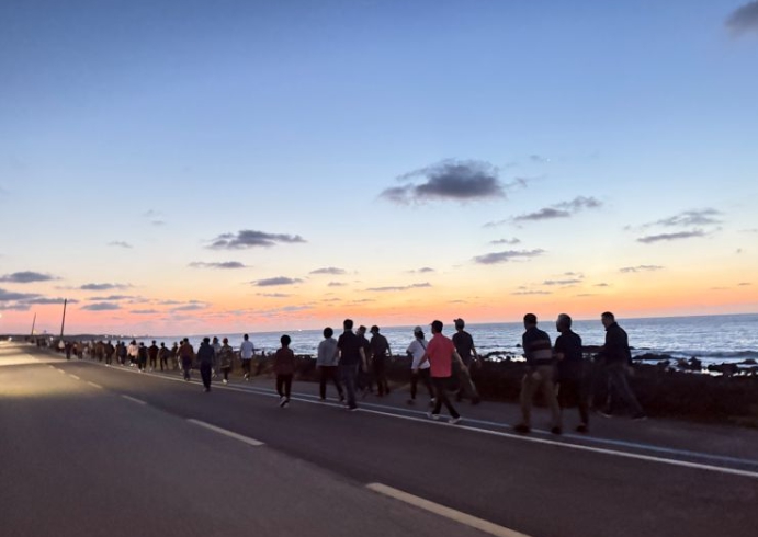 [파이낸셜경제=김영란 기자] 서귀포시는 일상생활 속 1일 7천 보 걷기 활성화를 위하여 11일 새벽 5시 신산리 마을주민들과 함께하는 '힐링 UP! 혼디모영 걸을락(樂)' 신산마을걷기를 운영했다.