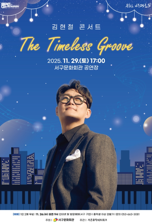 [파이낸셜경제=김지훈 기자] 서구문화회관은 11월 29일 오후 5시 서구문화회관 공연장에서 2025 서구愛 마토콘서트 피날레로‘김현철 콘서트 : The Timeless Groove’를 개최한다.