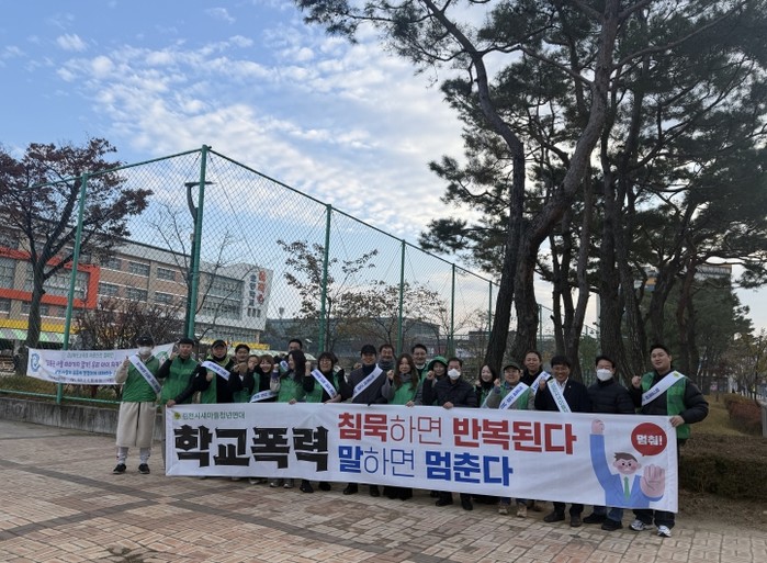 [파이낸셜경제=김지훈 기자] 김천시청년새마을연대(회장 이동협)와 김천경찰서는 24일 아침, 율곡초등학교 및 율곡중학교 앞에서 학교폭력 근절 합동 캠페인을 전개했다.