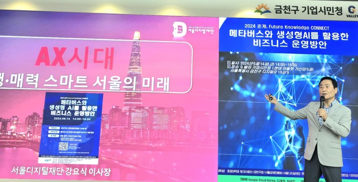 [파이낸셜경제=강인아 기자] 금천구청이 14일 오후 G밸리 기업시민청에서 중앙대학교, 서울경제진흥원, 그리고 서울디지털재단과 협력하여 ‘메타버스와 생성형 AI를 활용한 비즈니스 운영방안’을 주제로 한 세미나를 개최했다.