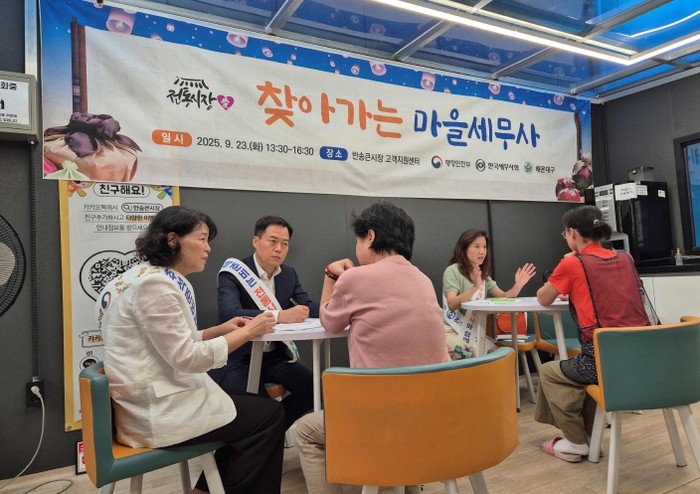현장에서 전통시장 상인과 주민들을 대상으로 무료 세무 상담이 진행됐다. 국세 분야는 세무사 3명이, 지방세 분야는 구청 직원 2명이 각각 종합소득세, 취득세, 재산세 등 생활 밀접 세금 상담을 맡았다.