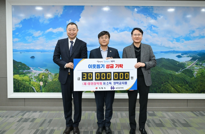 [파이낸셜경제=김예빈 기자] 거제시는 지난 26일, (재)동헌장학회가 관내 저소득 가정 학생들의 학업 지원을 위해 장학금 3,000만 원을 기탁했다고 밝혔다.