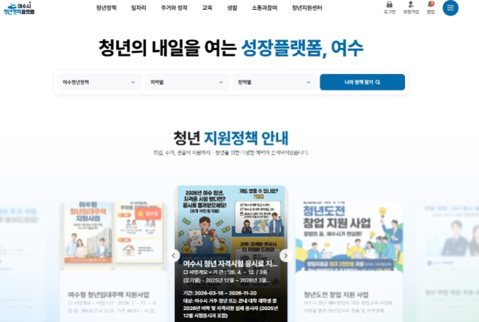 | ▲ 여수시청년정책플랫폼 메인화면 |