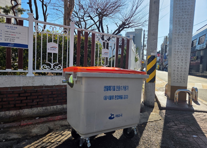 [파이낸셜경제=김예빈 기자] 여수시는 지난 26일 깨끗한 도시환경 조성을 위해 가로변 쓰레기 배출 취약지역 70개소에 종량제봉투 전용 수거함을 시범적으로 설치했다.