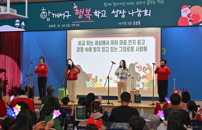 이날 성장 나눔회에는 김이강 서구청장을 비롯해 행복학교 참여 가족 등 100여 명이 참석해 1년간의 배움과 변화를 되돌아보며 서로의 성장을 공유했다.