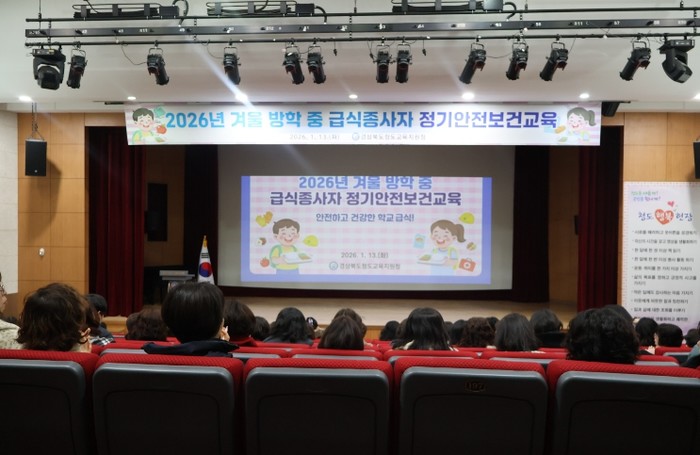 [파이낸셜경제=김지훈 기자] 경상북도청도교육지원청은 1. 13. 청도군 청소년수련관 다목적홀에서 청도·영천 지역 학교 급식종사자 130여 명을 대상으로 방학 중 정기안전보건교육을 실시했다.