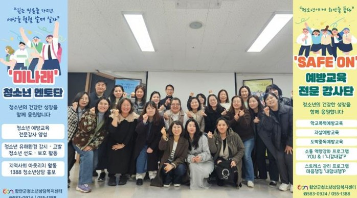 배현주 함안군청소년상담복지센터장은 "오랜 시간 지역 청소년들을 위해 헌신해 온 미나래 멘토단이 있기에 우리 청소년들이 더욱 안전하고 행복하게 성장할 수 있다"며 "올해도 멘토단의 역량 강화를 적극 지원해 지역사회 청소년 안전망을 더욱 탄탄히 구축하겠다"고 전했다.