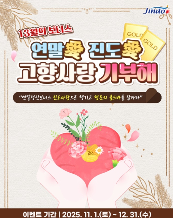 [파이낸셜경제=김예빈 기자] 진도군은 연말을 맞아 11월 1일부터 12월 31일까지 두 달 동안 ‘연말愛 진도愛 고향사랑기부 이벤트’를 진행한다.