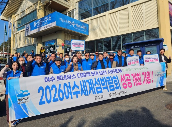 [파이낸셜경제=김예빈 기자] 여수시 돌산읍은 지난 1월 29일 돌산읍사무소 인근 도로변에서 ‘여수 르네상스 다함께 5대 실천 시민운동’ 캠페인을 전개하며 2026여수세계섬박람회 성공개최를 위한 홍보활동을 펼쳤다고 밝혔다.
