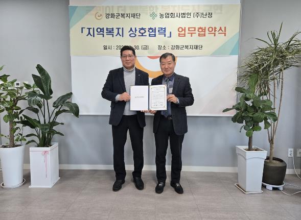 | ▲ 농업과 복지가 만나다…강화군복지재단-㈜난정, 업무협약 체결 |
