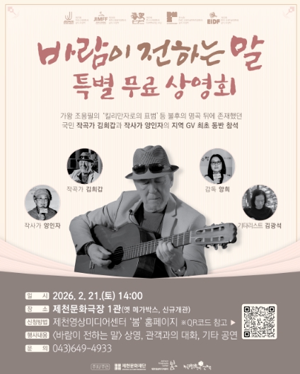 [파이낸셜경제=김기보 기자] 제천문화재단이 오는 2월 21일 오후 2시, 제천문화극장 (의병대로18길 1)에서 양희 감독과 출연진이 함께 하는 '바람이 전하는 말' 특별 무료 상영회를 개최한다.