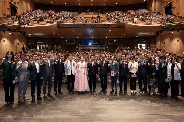 | ▲ 김동근 시장이 10월 1일 ‘제29회 노인의 날 기념식’에서 참석자들과 기념사진을 찍고 있다. |
