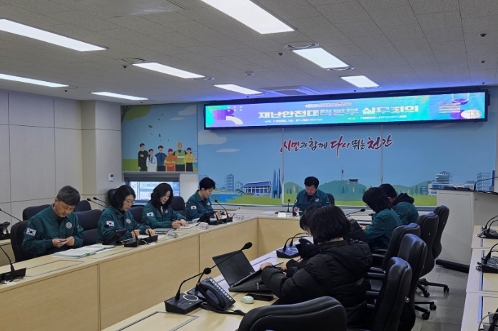 | ▲ 1. 천안시가 지난 21일 시청 농업환경국장실에서 재난안전대책본부 상황판단회의를 열고 대응 상황을 점검하고 있다. |
