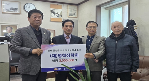[파이낸셜경제=김영란 기자] 연말이 되면서 우리 주변에 어려운 이웃을 위한 성금 모금이 한창인 가운데 공주시 전기공사협의회(회장 윤경수)는 지역의 인재 양성을 위한 장학사업비 300만원을 (재)명학장학회에 전달했다.