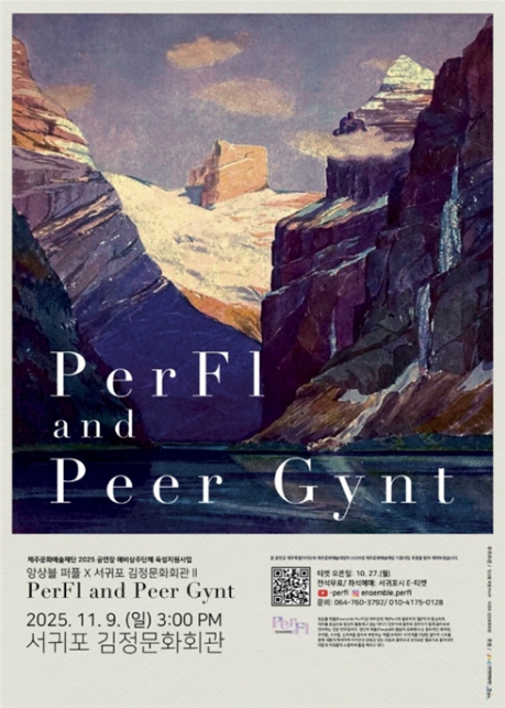 [파이낸셜경제=김영란 기자] 서귀포시는 2025년 공연장 상주단체 육성지원사업의 일환으로, 11월 9일 오후 3시 김정문화회관 공연장에서 앙상블 퍼플의 플루트·타악기 앙상블 공연 '페르귄트'를 개최한다.