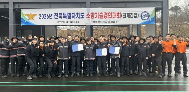 [파이낸셜경제=김예빈 기자] 전북특별자치도소방본부는 지난 18일 전북소방교육훈련센터(장수군 소재)에서 2026년 도 소방기술경연대회(화재진압전술 분야)를 개최했다고 밝혔다.