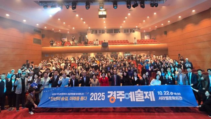 [파이낸셜경제=김지훈 기자] 경상북도경주교육지원청은 2025년 10월 22일 18:00부터 20:00까지 경주서라벌문화회관 대강당에서 『천년의 숨결, 미래를 품다』라는 주제로 2025 경주예술제를 성대하게 개최했다.