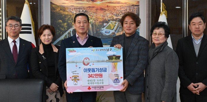 [파이낸셜경제=김지훈 기자] 대구 남구는 대명3동 뉴타운 재개발사업 조합의 조합장(이대룡)을 비롯한 임원, 대의원 및 직원이 지난 2025년 12월 30일 연말을 맞아 어려운 이웃을 위해 써달라며 정성껏 모은 성금 342만원을 기탁했다고 밝혔다.