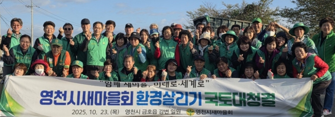[파이낸셜경제=김지훈 기자] 영천시새마을회는 23일 오수파크골프장 인근 금호강변에서 회원 60여 명이 참석한 가운데 ‘새마을 환경살리기 운동’의 일환으로 정화활동을 펼쳤다.