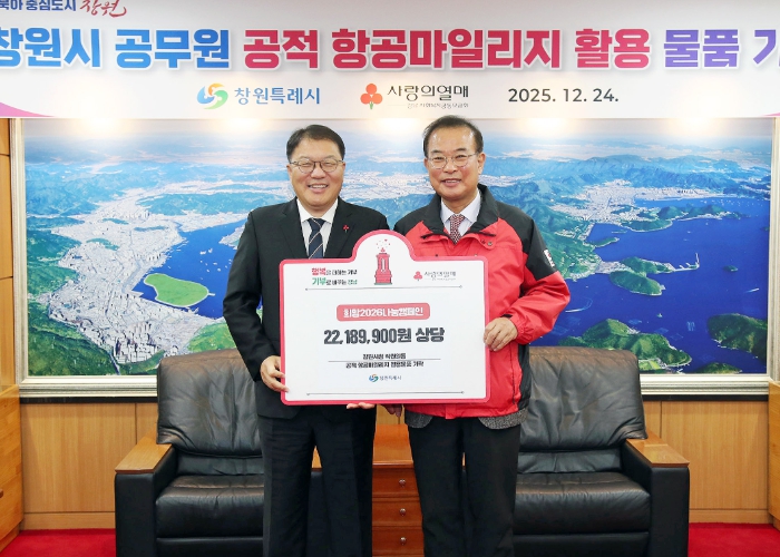 장금용 창원특례시장 권한대행은 “공적 자원을 활용한 이번 기부는 공직사회의 책임성과 나눔의 가치를 함께 실천한 의미 있는 사례”라며, “앞으로도 다양한 사회공헌 활동을 통해 시민과 함께 성장하는 따뜻한 공동체를 만들어 나가겠다”고 말했다.