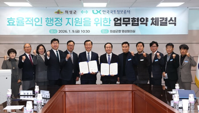 주요 협약 내용은 ▲공유재산의 체계적인 관리 및 효율적 활용을 위한 이용·분석 협력 ▲국토이용정보체계 고도화를 위한 연속지적·주제도 정비 및 품질관리 협력 ▲군민의 안전을 위한 의성형 스마트 재난안전관리 플랫폼 구축 지원 협력 등이다.