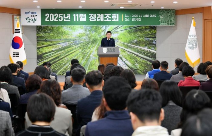 [파이낸셜경제=김영란 기자] 담양군은 3일 군청 면앙정실에서 정철원 군수를 비롯한 공직자 160여 명이 참석한 가운데 11월 정례조회를 열었다.