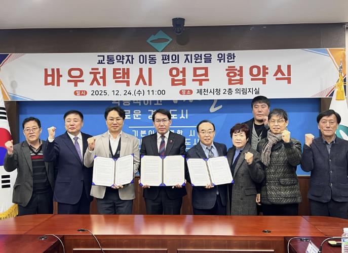 [파이낸셜경제=김기보 기자] 제천시는 지난 24일 교통약자의 이동권 보장과 이동 편의 증진을 위해 청풍호콜센터, ㈜티머니 모빌리티와 바우처택시 업무협약을 체결했다.