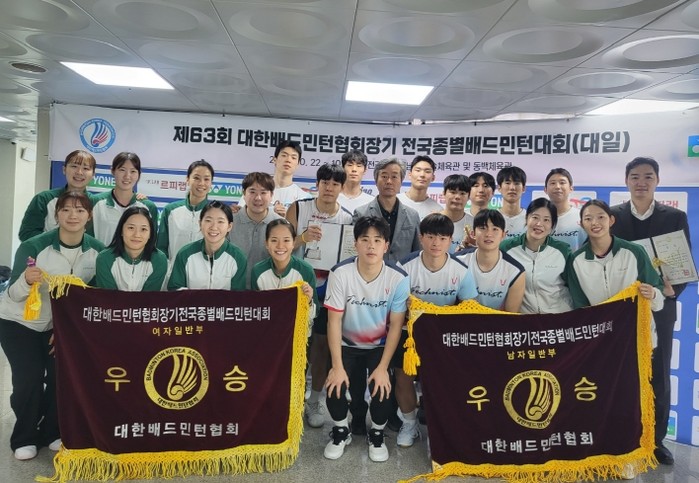 [파이낸셜경제=금윤지 기자] 김천시청 배드민턴단이 10월 22일부터 29일까지 전남 해남군 우슬체육관에서 열린 제63회 대한배드민턴협회장기 전국종별배드민턴대회에서 남자 단체전과 여자 단체전 모두 우승을 차지하며 전국 최강 실업팀의 저력을 입증했다.
