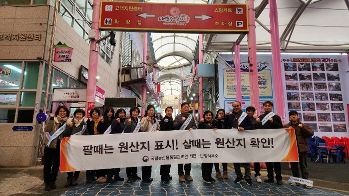 이번 캠페인은 설 명절을 맞아 전통시장 내 농.식품 취급업체 등을 대상으로 공무원 5명, 소비자 명예감시원 6명, 전통시장 상인회관계자 1명이 참여하여 원산지 부정유통 방지와 전통시장 원산지표시 정착을 위해 표시판 및 전단지를 배부했다.