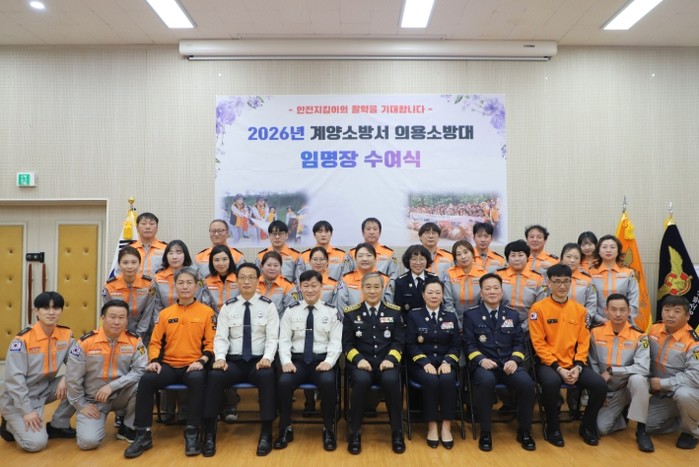 행사는 ▲2026년 신규 의용소방대원 임명장 수여 ▲모범 의용소방대원 표창장 수여 ▲서장 축사 및 기념촬영 순으로 진행됐다.