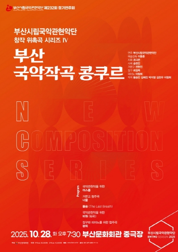 [파이낸셜경제=박영진 기자] 부산시립국악관현악단(예술감독 이동훈)은 ‘창작위촉곡 시리즈 Ⅳ '부산 국악작곡 콩쿠르'’를 오는 10월 28일 오후 7시 30분, 부산문화회관 중극장에서 개최한다. 이번 공연은 평택시립국악관현악단 부지휘자 조다은이 객원지휘를 맡고, 음악평론가이자 월간 객석 편집장인 송현민이 사회를 맡아 진행한다.