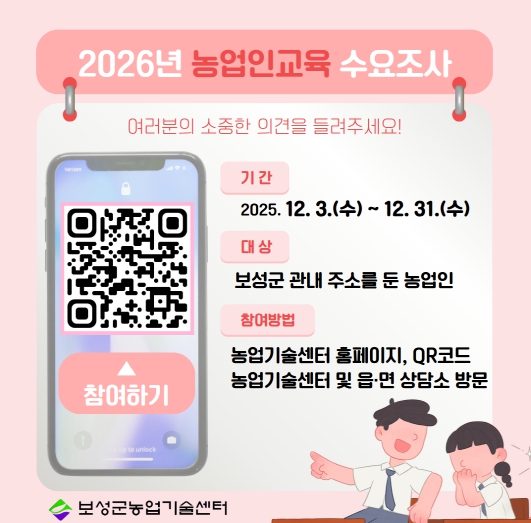 | ▲ 보성군, 2026년 농업인 교육 수요 조사 실시_2026년 농업인교육 수요조사 홍보용 이미지 |