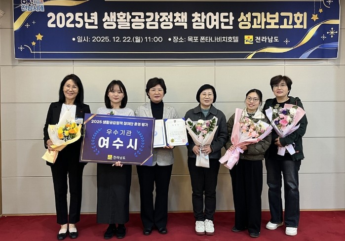 [파이낸셜경제=김예빈 기자] 여수시가 2025년 생활공감정책 참여단 평가에서 전남도 시·군 가운데 1위를 차지해 도지사 기관 표창을 수상했다.