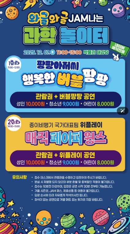 이번‘와글와글 JAM나는 놀이터’는 박물관이 단순한 관람을 넘어 과학과 예술·공연·전시·교육 등 다양한 활동이 어우러지는 복합문화공간으로서의 역할은 물론 지역 주민과 방문객이 쉽게 문화 활동에 참여할 수 있도록 하는데 그 의미가 있다.