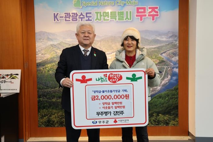 [파이낸셜경제=김예빈 기자] 무주군 무주읍에 위치한 한식 전문점 ‘무주명가’의 김민주 사장이 지난 14일 무주군에 이웃돕기 성금 1백만 원, (재)무주군교육발전장학재단에 장학금 1백만 원 등 총 2백만 원을 기탁했다.