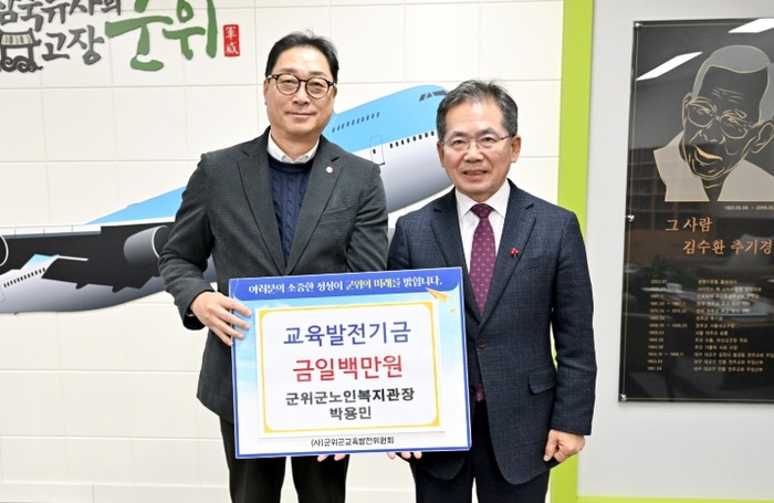 [파이낸셜경제=김지훈 기자] 지난 15일 군위군노인복지관 박용민 관장과 군위군 궁도스포츠클럽 회원일동은 군위군청을 방문하여 지역의 교육 발전과 인재양성을 위해 써달라며 교육발전기금 200만원을 기탁했다.