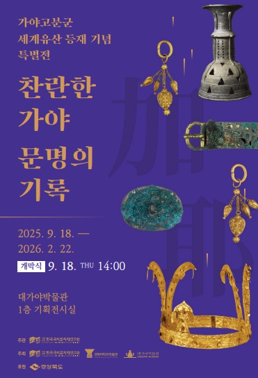 전시는, 지산동 고분군을 비롯한 가야고분군 소개와 전경 사진을 시작으로 대가야의 금동허리띠 장식(일본 도쿄국립박물관 소장), 봉황무늬 고리자루 큰칼(미국 보스톤미술관 소장)을 비롯하여 주요 가야 유물 100여 점이 생생한 사진 자료로 꾸며질 예정이다.