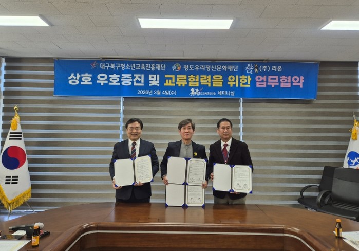 기화서 청도우리정신문화재단 대표이사는 “대내외 다양한 청소년 교육기관과의 협력은 청도의 문화·관광·체험 프로그램 협력을 강화하는 계기가 될 것이며, 앞으로 교육프로그램 공동 개발과 체험형 콘텐츠 확대를 통해 지역 문화관광 활성화와 생활 인구 증대에 기여하겠다”고 밝혔다.