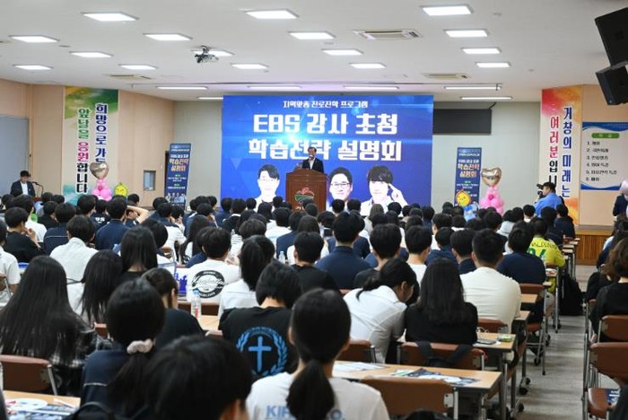 지난 7월 중순 2일간 개최한 EBS 대표 강사 초청 학습전략 설명회는 학생과 학부모 등 400여 명을 대상으로 시행했으며, 학생들의 자기주도 학습 역량과 진로 설계 능력을 한층 강화하는 계기가 됐다.