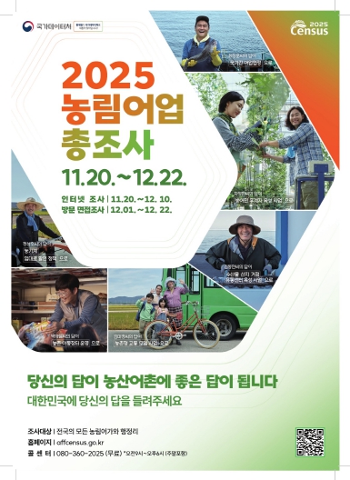 군 관계자는 "2025 농림어업총조사는 5년마다 실시되는 대규모 총조사로 농림어업 정책의 기반이 되는 매우 중요한 조사"라며 “조사 기간 동안 조사원의 방문에 적극 협조해 주셔서 정확하고 신뢰도 높은 통계가 수집될 수 있도록 부탁드린다.”고 당부했다.