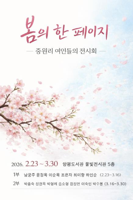 [파이낸셜경제=김기보 기자] 양평군은 양평도서관 5층 ‘물빛전시관’에서 용문면 중원리 여성 미술 동호회 회원들의 회화 전시 ‘봄의 한 페이지’를 개최한다고 밝혔다.