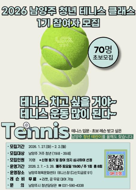 | ▲ 남양주시, ‘2026 남양주 청년 테니스 클래스 1기’ 참여자 모집 |