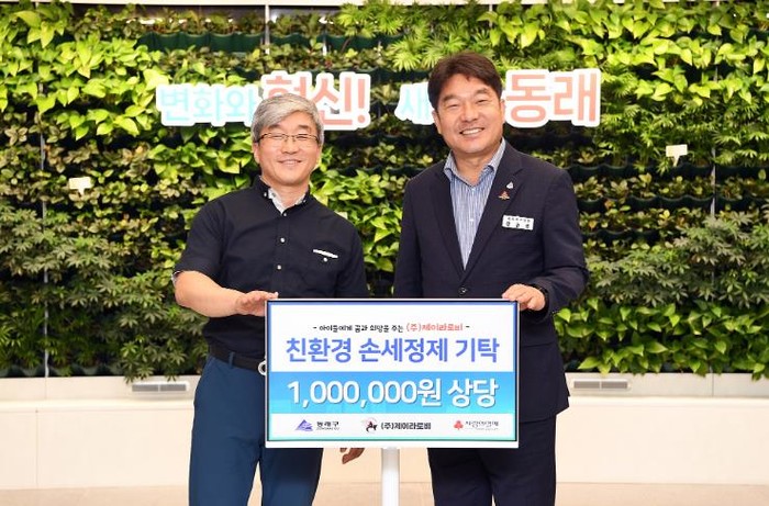 한편, ㈜제이라로비는 천연세제 등을 제조하는 업체로 2020년 4월 예비사회적기업으로 선정됐으며, 지난해 1월에는 향균 탈취 세정제 130만 원 상당을 지원하는 등 2년 연속 동래구에 나눔을 실천하고 있다.