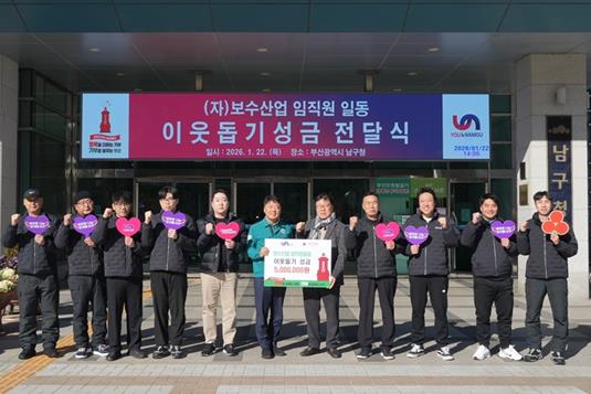 [파이낸셜경제=박영진 기자] (자)보수산업은 지난 1월 22일, 부산 남구청을 방문해 직원들이 십시일반 정성을 모아 마련한 성금 500만 원을 기부했다고 밝혔다.