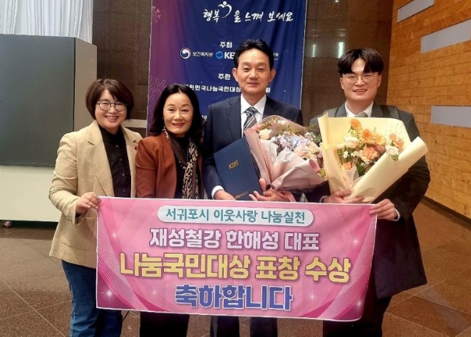 [파이낸셜경제=김영란 기자] 서귀포시는 재성철강 한해성 대표가 2014년부터 11년간 이웃사랑을 적극 실천해 온 공로를 인정받아 11월 6일 서울 KBS 본사에서 열린 ‘2025년 나눔국민대상 시상식’에서 민간단체장 대표수상자로 표창(KBS사장 표창)을 수상했다고 밝혔다.