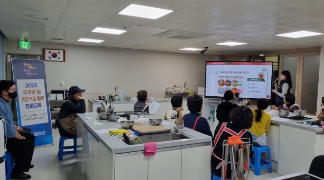 [파이낸셜경제=김예빈 기자] 화순군은 지난 12월 1일부터 12월 3일까지 3일간 농촌문화교육관 조리실에서 관내 급식관계자, 영양(교)사, 가공·체험 프로그램 운영자 등 20명을 대상으로 ‘우리쌀·밀 가공식품 조리 기술 전문교육’을 실시했다고 밝혔다.