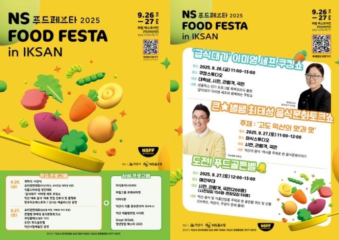 익산시는 오는 26일부터 27일까지 제4일반산업단지 내 하림 퍼스트키친에서 'NS푸드페스타 2025 in 익산'과 '그레이트 익산(Great Iksan) 청년창업 페스타 2025'가 열린다고 25일 밝혔다.