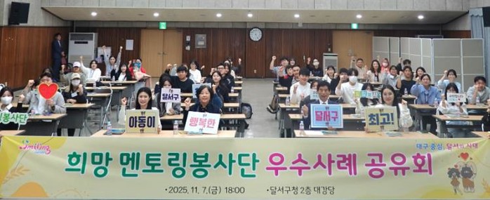 [파이낸셜경제=김지훈 기자] 대구 달서구는 지난 7일 구청에서 멘토링봉사단 멘토와 멘티를 초청해 '희망 멘토링봉사단 우수사례 공유회'를 개최했다.