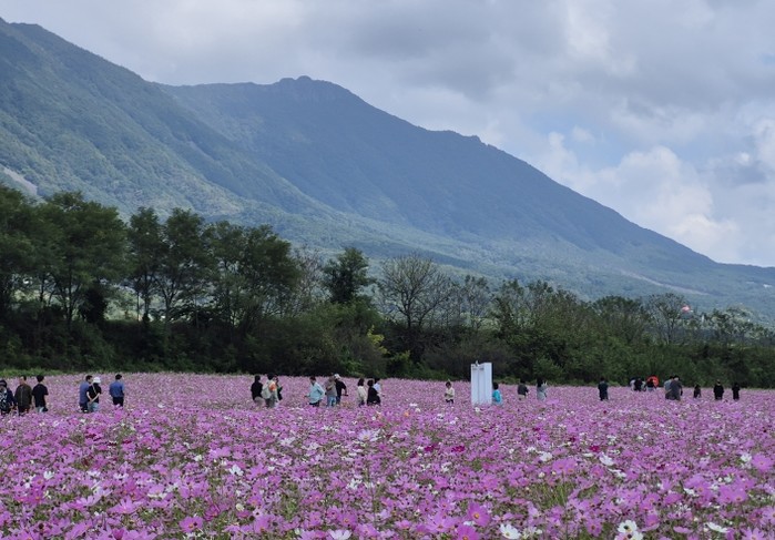 가조온천꽃단지는 연휴 기간 분홍빛․황금빛 코스모스가 만개하며 사진 명소로 큰 인기를 끌었다. 포토존과 커피쿠폰 이벤트, 치유프로그램 체험 부스 운영 등으로 방문객들의 만족도를 높였다.