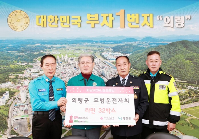 [파이낸셜경제=김예빈 기자] 의령군은 지난 30일, 연말 이웃돕기를 위해 의령군 모범운전자회가 라면 32박스(100만 원 상당)를 기탁했다고 밝혔다.